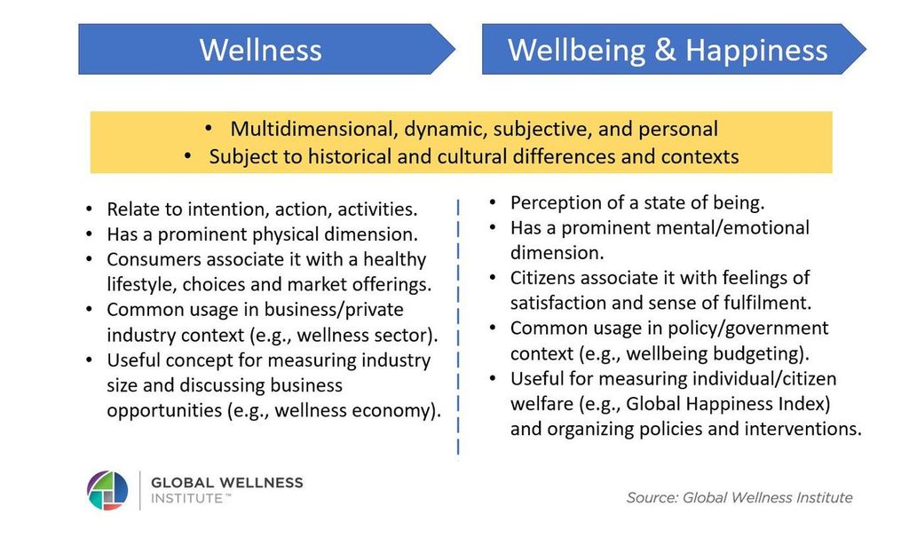 The Global Wellness Institute defines wellness as the active pursuit of activities, choices and lifestyles that lead to a state of holistic health.