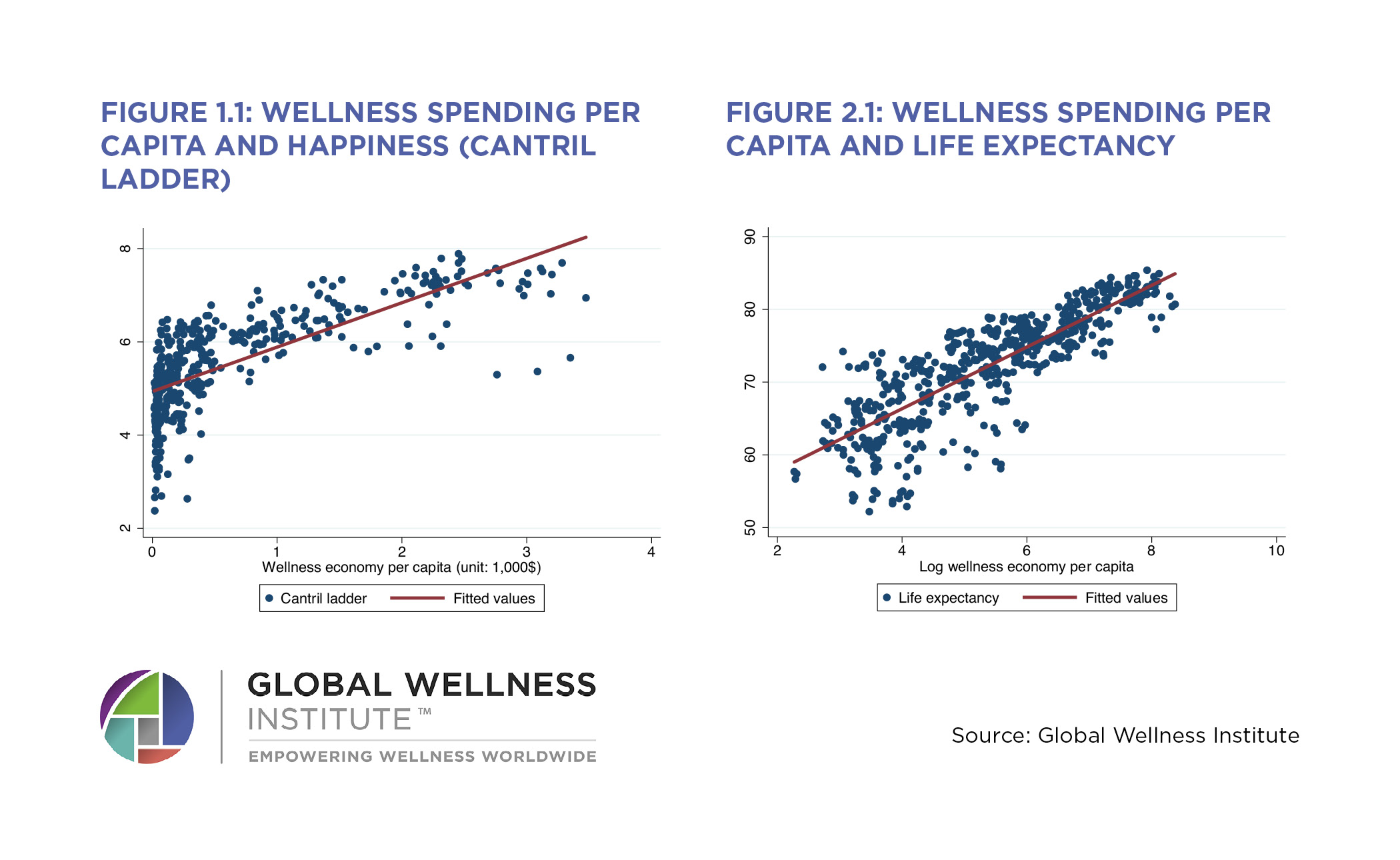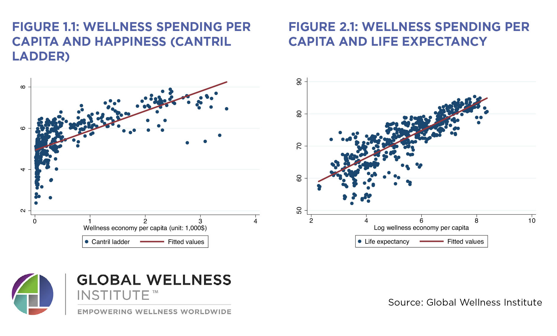- The wellness economy is strongly and positively correlated with happiness at the country level.