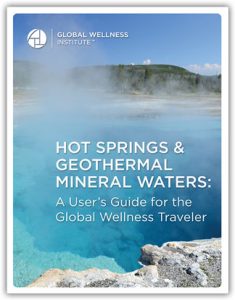 This user’s guide, published by the Global Wellness Institute and written by Ed Moffett and Amy McDonald, was created to help wellness travelers grasp the value of, and more specifically learn facts about, participating in hot springs bathing. It includes critical information ranging from what sets natural hot springs apart to how important sustainable practices are around these valuable resources, to the clearing up of some widespread global confusion about the difference between natural geothermal mineral water and facilities that offer heated (and/or minerals added) water experiences and use the word “thermal.”