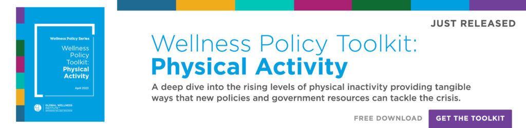 Miami, FL – April 14, 2023 – The nonprofit Global Wellness Institute™ (GWI), the leading research and educational resource for the global wellness industry, today released the Wellness Policy Toolkit: Physical Activity. The toolkit takes a deep dive into what is driving rising levels of physical inactivity worldwide and the many tangible ways that new policies, government resources and public-private partnerships can tackle the crisis. It outlines six distinct areas of policy action: from encouraging physical activity via the built environment, to addressing racial and ethnic disparities, to integrating physical activity into the medical system. It was released today at FIBO in Cologne, Germany, the world’s leading international trade show for fitness, wellness and health.