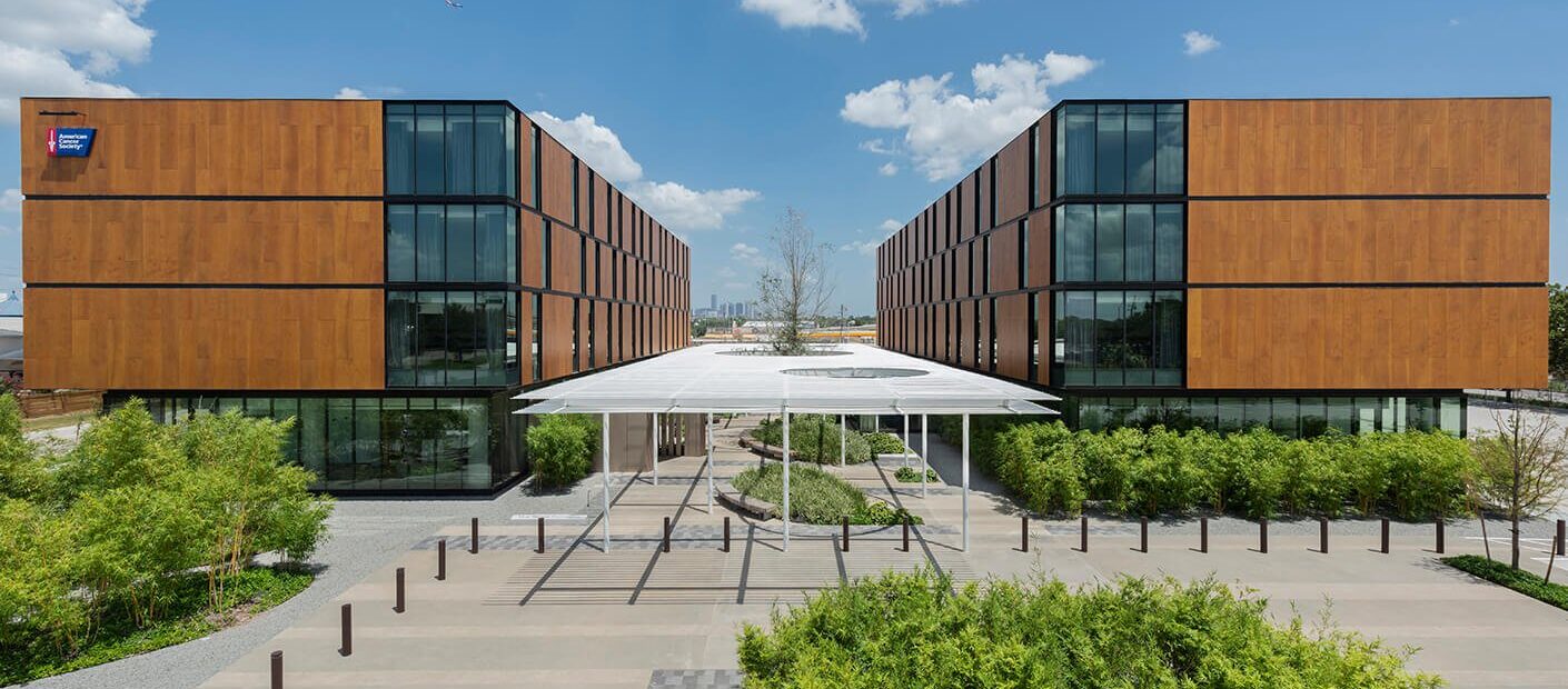 The American Cancer Society Richard M. Schulze Family Foundation Hope Lodge© in Houston, Texas (henceforth referred to as Hope Lodge Houston) is one of the newest among more than 30 American Cancer Society (ACS) Hope Lodges located across the United States. Cancer treatment is stressful, time-consuming and expensive; for patients who need to travel far away from home to receive treatment, there is the added financial burden of paying for lodging, food and transportation. The ACS Hope Lodge program, founded in 1970, aims to provide a free home away from home for cancer patients and their caregivers when they travel for treatment. Hope Lodge Houston, which opened in 2021, is a 64,000 square feet facility located near the Texas Medical Center campus and its various hospitals and cancer treatment centers. The lodge offers 64 one-bedroom suites free of charge, on a first-come, first-served basis, to qualified patients undergoing active cancer treatment, through referral by their treatment centers. There is no limit to how long patients can stay—some have stayed for up to a year or more—as long as they continue to be in active treatment. While there is no housekeeping service, the lodge provides free linens, laundry facilities and cleaning supplies to guests. Hope Lodge Houston is essentially a hospitality complex hosting guests with medical conditions and specialized needs, staffed by professionals as well as a group of dedicated volunteers. According to Perkins&Will, the overall design of Hope Lodge Houston “seeks to develop a building as a sanctuary, providing refuge and a sense of rejuvenation and hope, helping to generate the energy and camaraderie necessary to promote the healing process.”1